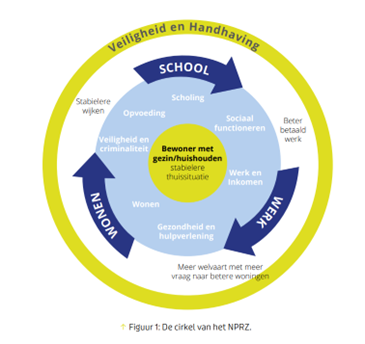 Lombardijen is een ruim opgezette en groene wijk in Rotterdam Zuid. Voor het hele gebied is er een langdurige aanpak om de leefbaarheid en de kansen voor bewoners te verbeteren. Dat is het Nationaal Programma Rotterdam Zuid. Het NPRZ beslaat een periode van wel 20 jaar, waarin veel moet gebeuren (zie figuur 1: De cirkel van het NPRZ). Verschillende opgaven worden hierin integraal aangepakt door met veel verschillende organisaties, ondernemers en inwoners intensief samen te werken.