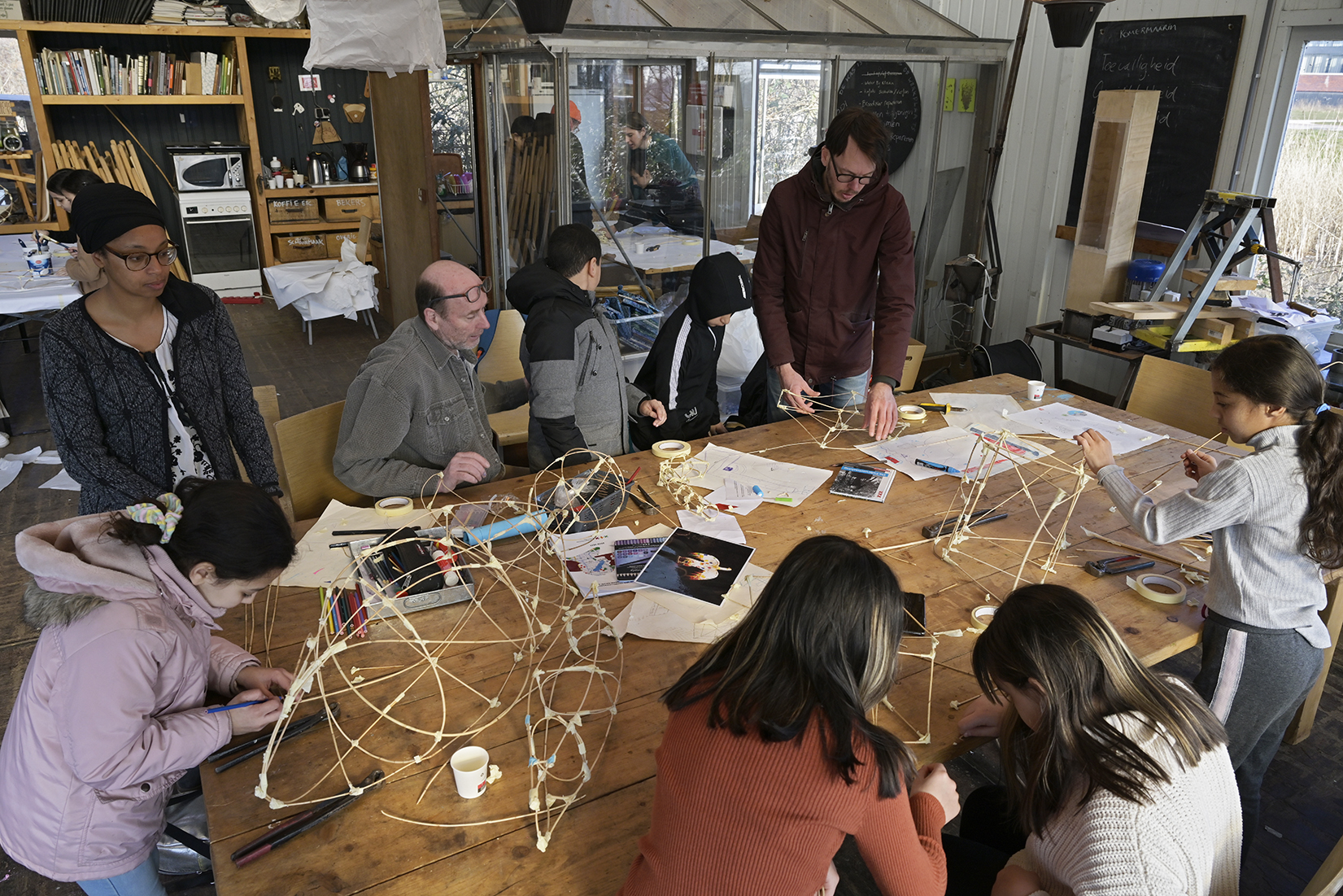 De Buurtwerkplaats is een van de vijf wijkpartners in het samenwerkingsverband ‘Samen leren in de wijk’ dat in 2019 opbloeide in Amsterdam Nieuw-West. Een van de projecten is ‘Onderzoekend Leren’. Bovenbouwleerlingen van drie scholen krijgen in vijf gemengde groepen – onder schooltijd! – steeds vijf donderdagochtenden les bij een culturele wijkinstellingen, met een gezamenlijke eindpresentatie in Ru Paré, de huiskamer van de wijk. Doelstelling: de leefwereld van kinderen verbreden, en cohesie in de wijk vergroten.